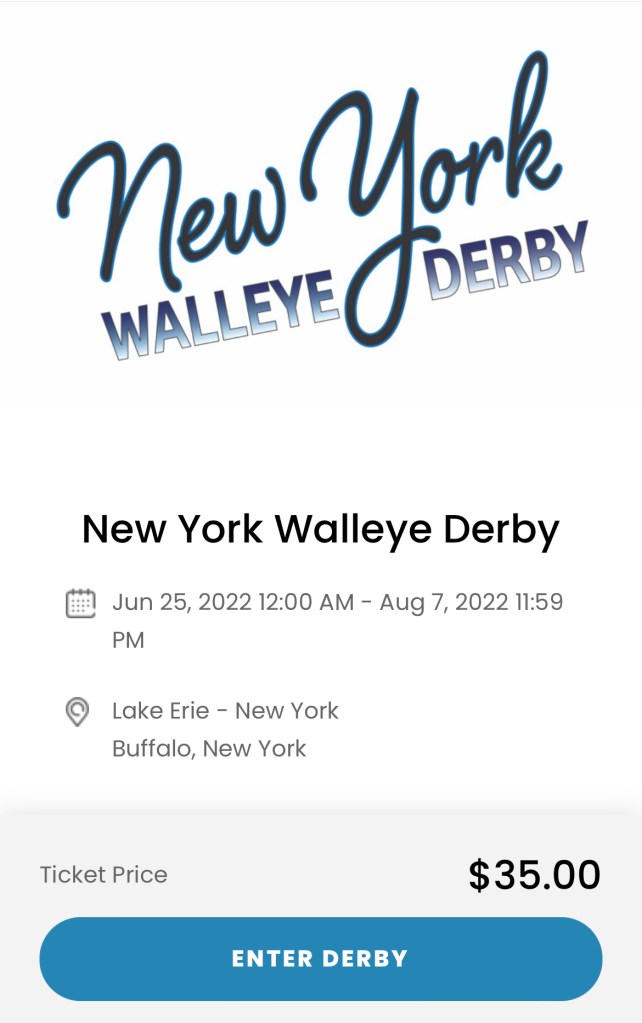 ENTRY FEE: $35.00 cash/check payable to NEW YORK WALLEYE DERBY